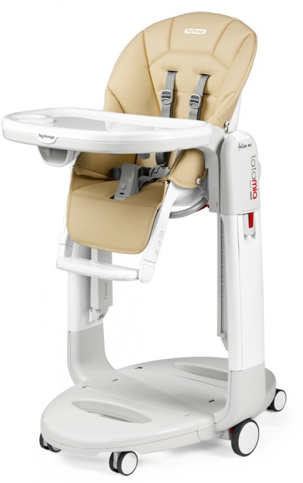 Стульчик для кормления Peg Perego Tatamia Follow Me Стульчик для кормления Peg Perego Tatamia Follow Me (Paloma New) – многофункциональная детская мебель популярной среди родителей всего мира модели. Представлена в обновлённом варианте, соответствующем евростандарту безопасности EN 14988. С самого появления в доме новорожденного может использоваться как уютный шезлонг с укачиванием. С полугода – для введения в рацион прикорма и последующих регулярных приёмов пищи. Делать это можно и за дефолтным столиком-подносом, и за общим обеденным столом, когда малыш подрастёт, демонтировав столик-поднос. Особо продвинутые родители задействуют современные стульчики для кормления в качестве игровых центров, благодаря их высокой практичности, они отлично подходят для рисования, лепки и прочих развивающих занятий. Прочное широкое основание, оснащённое колёсами, позволяет передвинуть стул в нужное место на кухне или в доме, где он надёжно блокируется на месте. Ребёнок любого возраста так же основательно фиксируется на сидении ремнями, при помощи межножного стопора и дополнительным стопором в нижней части столика.