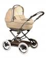 Peg Perego Martinelli Navetta XL Blu note – коляска для новорожденных премиум-класса представленная в элитной серии Martinelli, известной использованием дорогих материалов и элегантных тканей, а также ручной сборкой при изготовлении транспортных средств для самых маленьких. Коляска представлена в тёмно-синем и кремовом цветах на выбор и не оставит равнодушными тех, кто любит не только практичные, но и красивые вещи. Лёгкие и прочные алюминиевые шасси с литыми колёсами, проходимыми настолько, что мамочки характеризуют их как «внедорожники», без труда складываются компактной «книжкой», которая не займёт много места при хранении и поместится в багажник автомобиля. Когда малыш вырастет из коляски для новорожденных, на шасси можно будет установить прогулочный блок, а пока просторную и уютную классическую люльку смело используйте для прогулок в любую погоду. Плотный влагонепроницаемый защитный капюшон надёжно укроет кроху, находящегося внутри, от дождя, снега и жары, при этом вентиляцию люльки вы сможете отрегулировать самостоятельно по сезону. Так же как и спальное место, наклон которого изменяется, в зависимости от того, чем вы хотите занять малыша – уложить его спать или приподнять, чтобы накормить или развлечь. Люлькой, снятой с шасси, можно пользоваться как кроваткой для сна и колыбелькой для укачивания дома или автолюлькой – в автомобиле со штатными ремнями безопасности. Донести люльку с малышом от автомобиля удобно и просто за большую надёжную ручку. Все чехлы люльки снимаются и стираются в стиральной машине в небольшом температурном режиме. На раме коляски есть большая и прочная металлическая корзина-поддон с резиновым моющимся ковриком, в которую можно сложить вещи в дорогу или покупки из магазина.