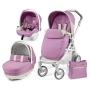 Peg Perego Book 51 Pure Set Modular luna – коляска 3 в 1 восхитительно нежных или насыщенных цветов на выбор на белоснежных шасси с литыми колёсами порадует мамочек не только практичных, но и не чуждых красивого. Лёгкая и маневренная, эта коляска будет расти с вашим малышом. Просторная люлька, оснащённая ручкой для переноски, могущая выполнять роль качалки и кроватки, сменится со временем прогулочным блоком, а во время поездок в автомобиле удобно использовать в качестве колясочного модуля автокресло, прихватив с собой в багажнике сложенные «книжкой» шасси. На местности коляска проявляет качества далёкие от качеств нежной принцессы, демонстрируя хорошую проходимость – амортизация задних колёс повышает плавность хода, а передние, поворотные, помогают преодолевать трудные поверхности. В нарядную сумку для маминых вещей, которую легко прикрепить на удобную ручку коляски, можно сложить также вещи малыша, а если места в сумке не хватило, воспользоваться вместительной корзиной для покупок на раме.